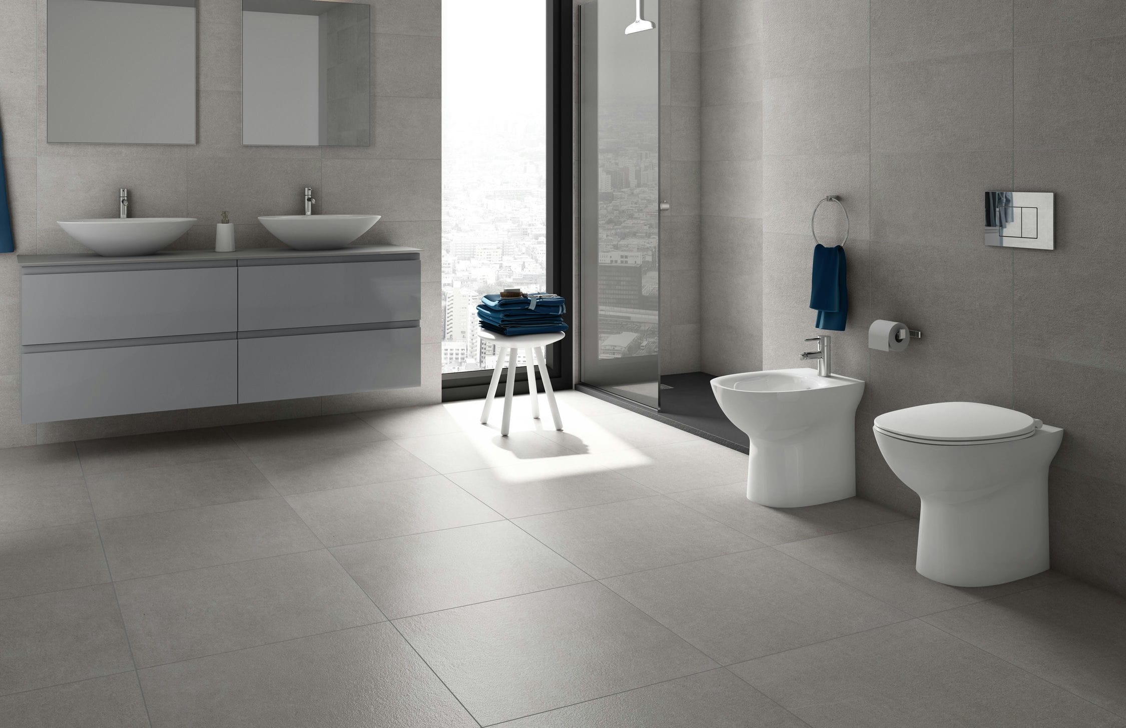 Use a high-quality flexible tile adhesive suitable for porcelain. For grout, we recommend a water-resistant, flexible grout with a width appropriate to your tile size (typically 2-3mm for large format tiles).