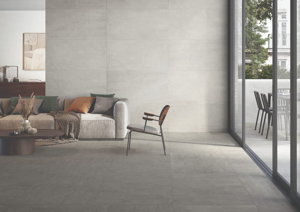 Use a high-quality flexible tile adhesive suitable for porcelain. For grout, we recommend a water-resistant, flexible grout with a width appropriate to your tile size (typically 2-3mm for large format tiles).