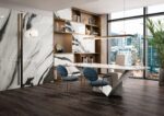 Use a high-quality flexible tile adhesive suitable for porcelain. For grout, we recommend a water-resistant, flexible grout with a width appropriate to your tile size (typically 2-3mm for large format tiles).